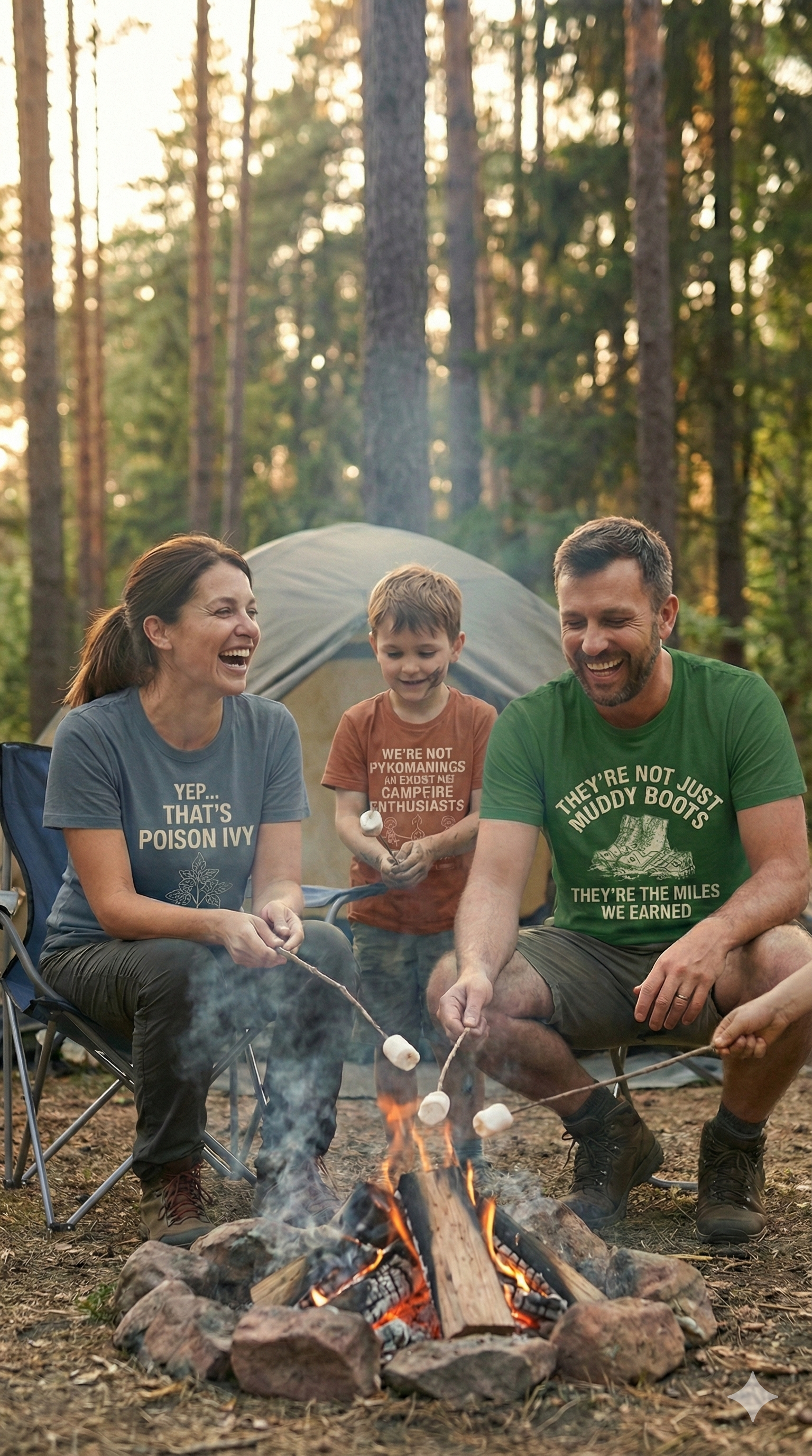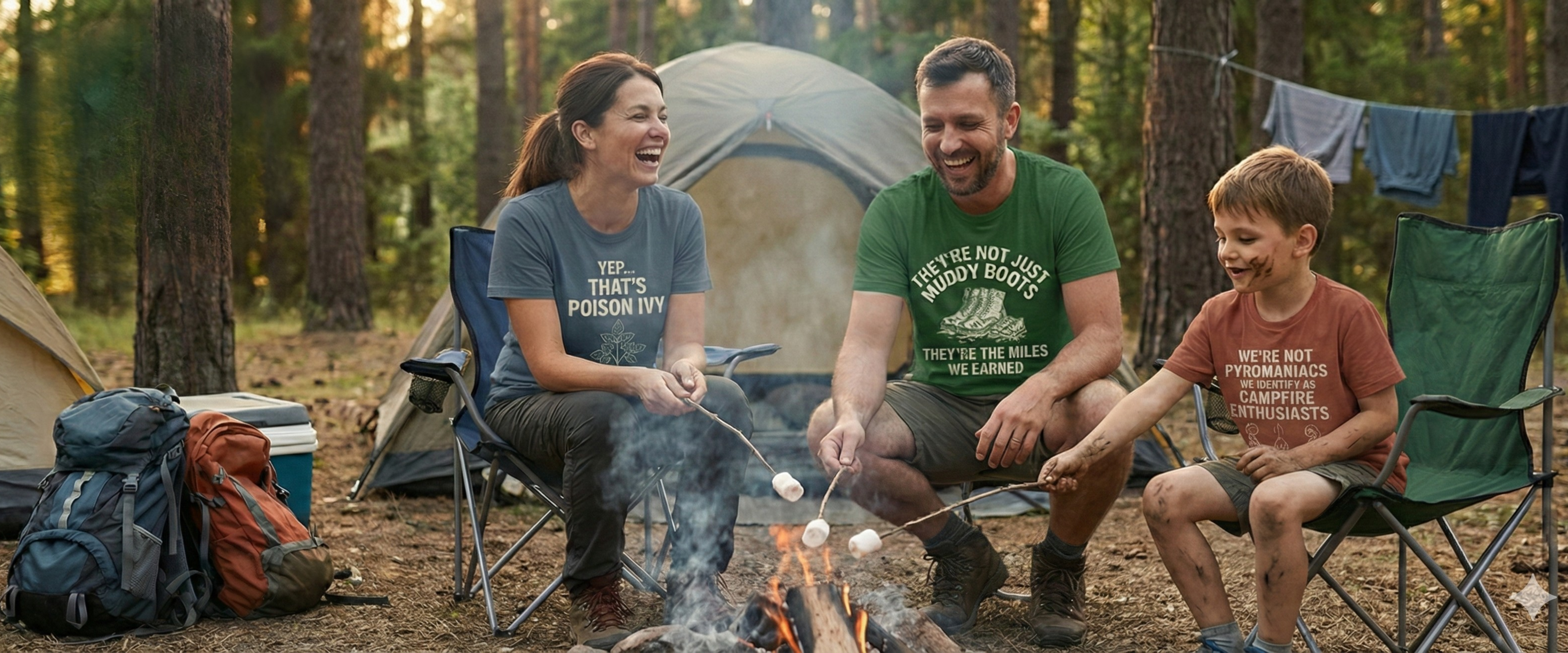 We use high-quality, comfortable materials that can handle whatever you throw at them—campfire smoke, kid hugs, that mysterious sticky substance from the cooler, even repeat washings after someone decided to "help" make s'mores.